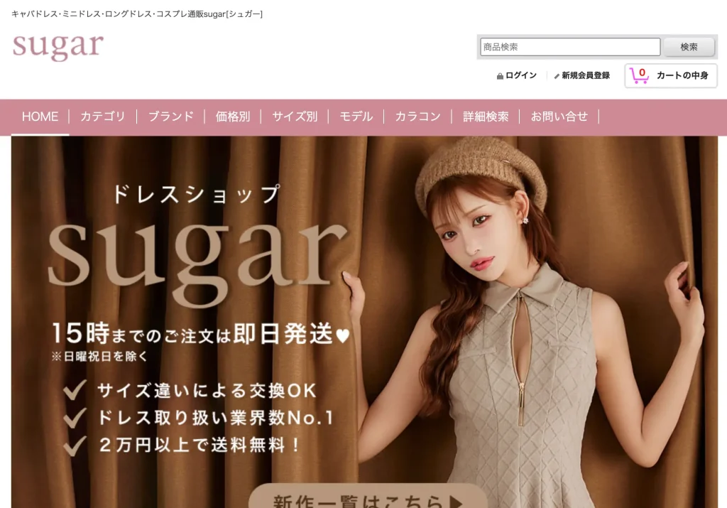 誕生日や記念日、お店の周年イベントなど、「絶対に主役になりたい!」そんな特別な日のためのドレスを探すならsugar(シュガー)一択です。Angel R(エンジェルアール)やAndy(アンディ)といった、女の子なら誰もが一度は憧れる高級ブランドドレスを多数取り扱っています。 価格はdazzystoreなどのプチプラサイトに比べると高価ですが、その分、デザインの繊細さや生地の質の高さは格別。着るだけで自信がみなぎる、まさに「勝負ドレス」が見つかるサイトです。